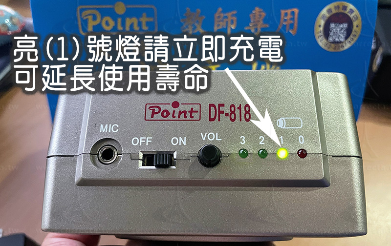 波音特教學擴音機主機上的電量燈號顯示是什麼意義?