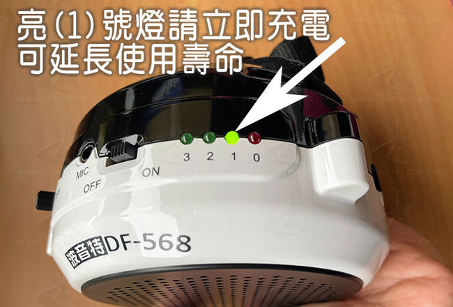 如長期不使用擴音機最好先充飽電再存放於長溫處,避免潮溼或酷熱,最好每一兩個月都要檢查電量並充飽電再存放。